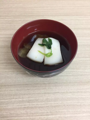 6. 1のソフトもちを椀盛りにし、5のお汁を盛り付ける。