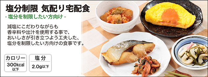 塩分が2.5g以下、カロリーが300kcal以下とそれほど制限はありませんが、栄養バランスに配慮した食事で何も考えること無く食事管理が出来ます。